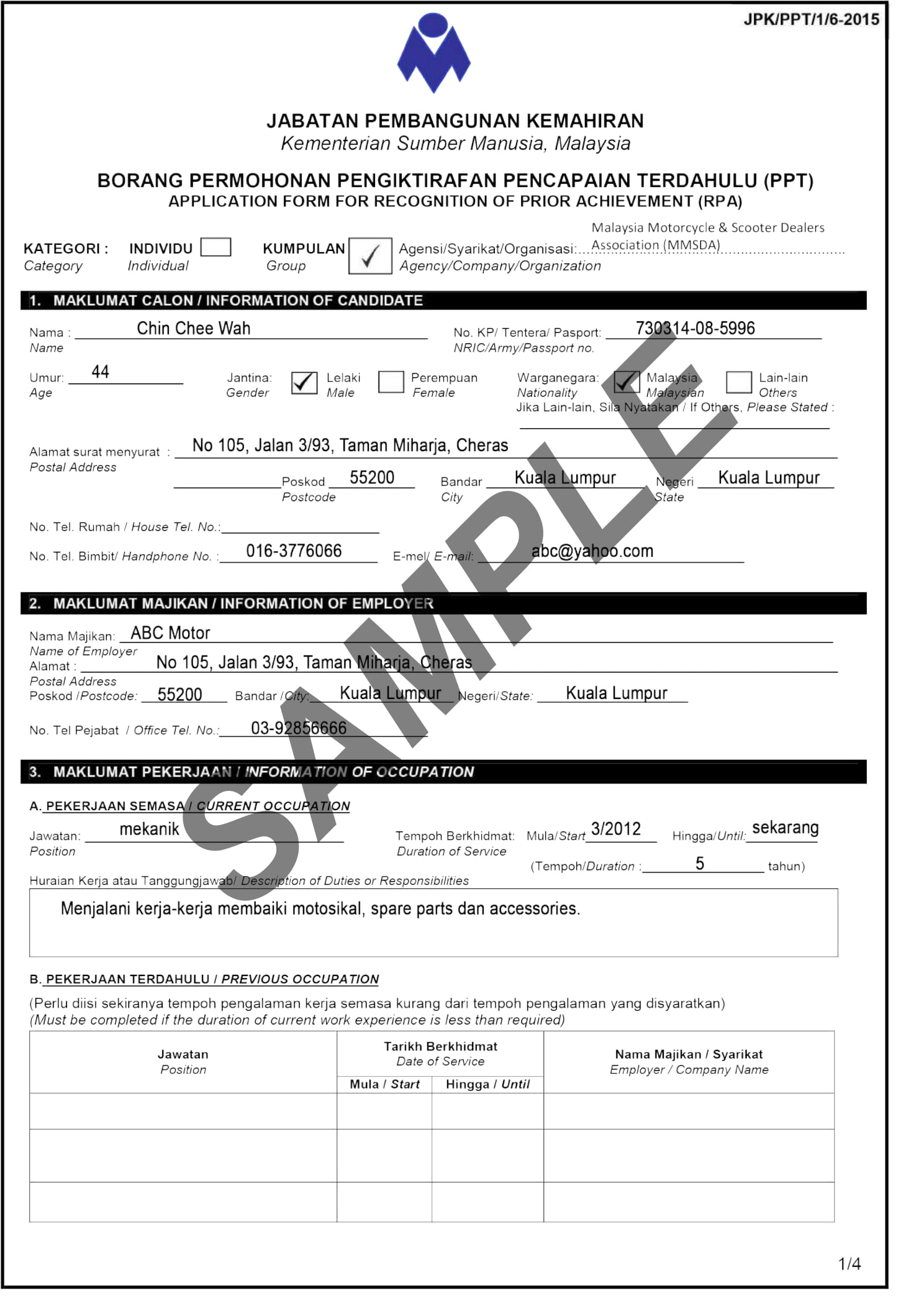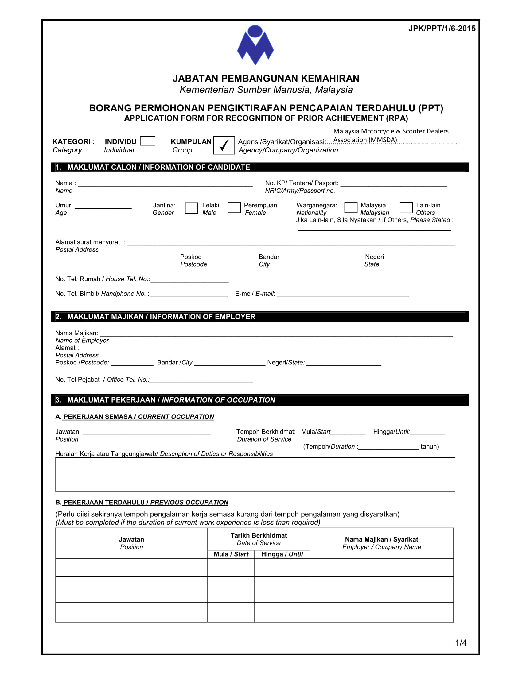 PERSATUAN PENIAGA MOTOSIKAL DAERAH MUAR ÂéÊôĦÍгµÉ̹«»á PPM - 007 - 01 - 23122013